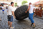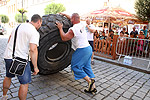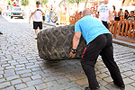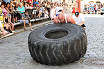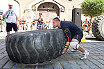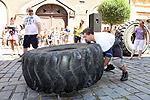 Hned 8 otoček se 450kg pneumatikou bylo pro většinu závodníků na úvod slušné kardio a pro některé z nich byl tenhle úkol nad jejich momentální síly. Pro některé byla naopak první disciplína rutina, do které se pustili s viditelnou radostí. Jedním z nich byl Jiří Vytiska, který při převracení pneumatiky na většině soutěží jen stěží hledá konkurenci. Díky své dynamice a perfektní technice předvedl nejlepší čas - 30,93. Jen o vteřinu za ním skončil domácí Pavel Zadražil (který byl společně s Jiřím Dejmalem pořadatelem letošního mistrovství). Třetí místo v disciplíně patřilo Radku Patákovi (36,09).