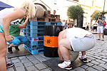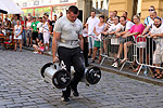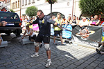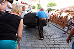 Co se týče pohybu a vynaložené energie, byla to odpočinková disciplína, ovšem s rizikem "ukousnutí" porce kůže z dlaní závodníků. Klíčem k nejlepšímu výkonu při držení aut na šikmých plošinách byla především síla úchopu, tolerance bolesti a hromadící se kyseliny mléčné a nepoškozené dlaně z předchozích disciplín. Ideální kombinace faktorů zajistila prvenství Pavlu Zadražilovi, který dosáhl času 1:05,05. Více než jednu minutu si zapsal ještě Jirka Dejmal (1:02,76) a třetí nejlepší čas patřil Davidu Štrombachovi (59,76). Po téhle disciplíně musel ze soutěže odstoupit veterán Jirka Žaloudek, který bojoval se zraněním na levém předloktí. Když jsem se ho ptal, která disciplína má potrhaná svalová vlákna na svědomí, s úsměvem mi řekl, že hospodaření na statku a že pochroumané svaly v předloktí jsou důsledkem potyčky s navztekaným beranem, kterého se snažil udržet jen jednou rukou.